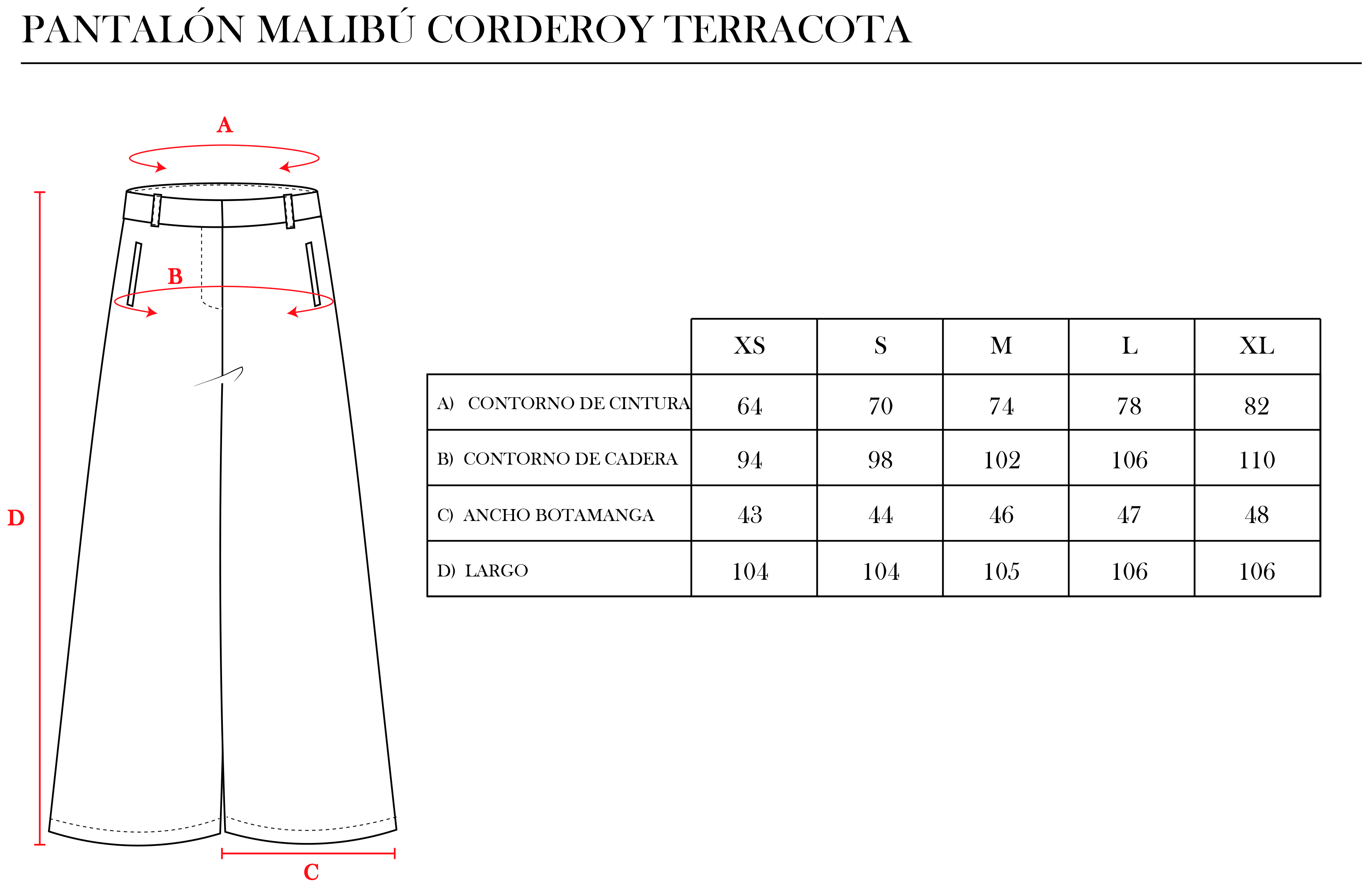 Bolsillos laterales y bolsillo ojal en la parte trasera. Confeccionado en Corderoy basta ancha 98% Algodón 2% Spandex.