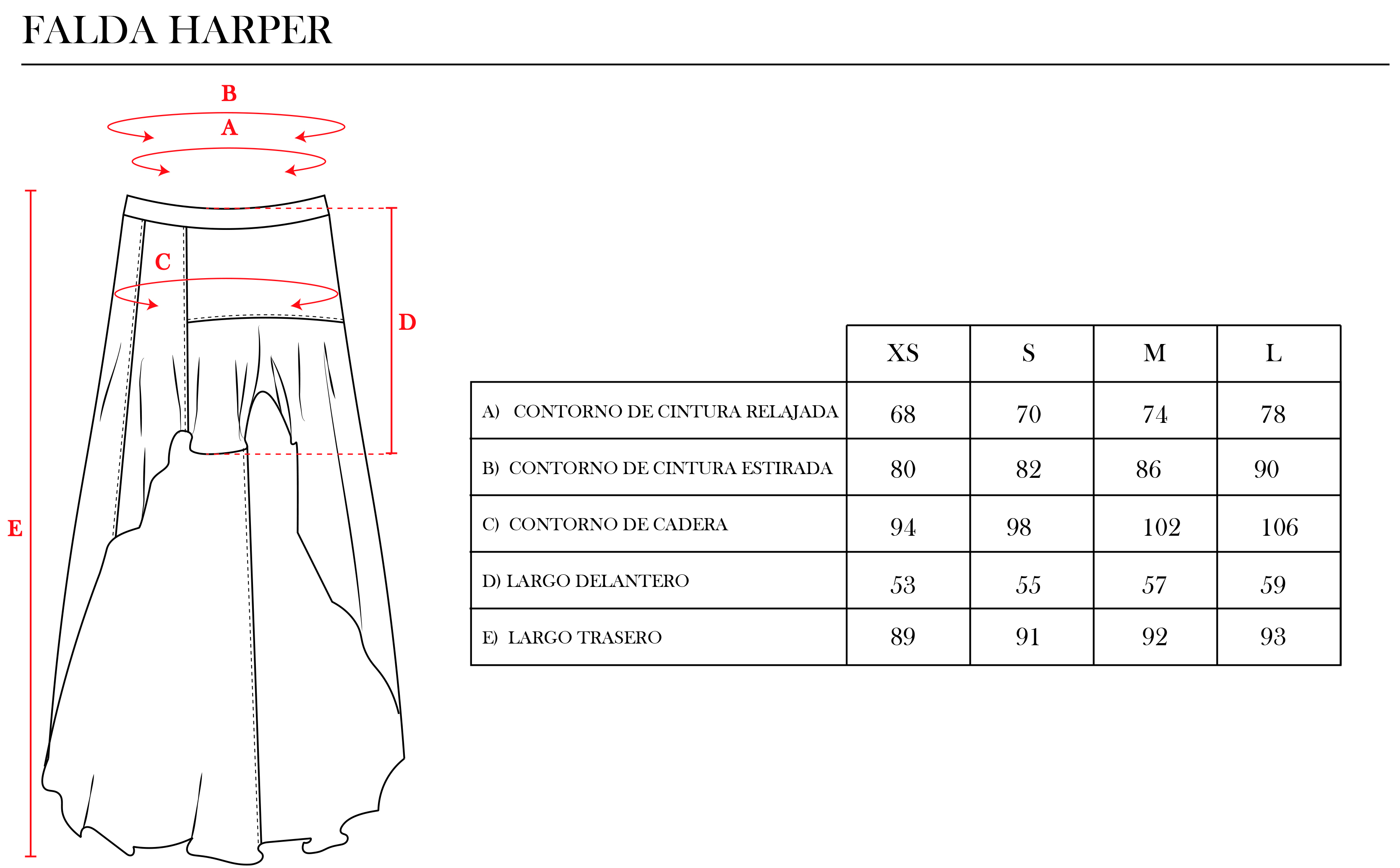 Falda midi irregular con recortes y elástico en la parte trasera de la cintura.